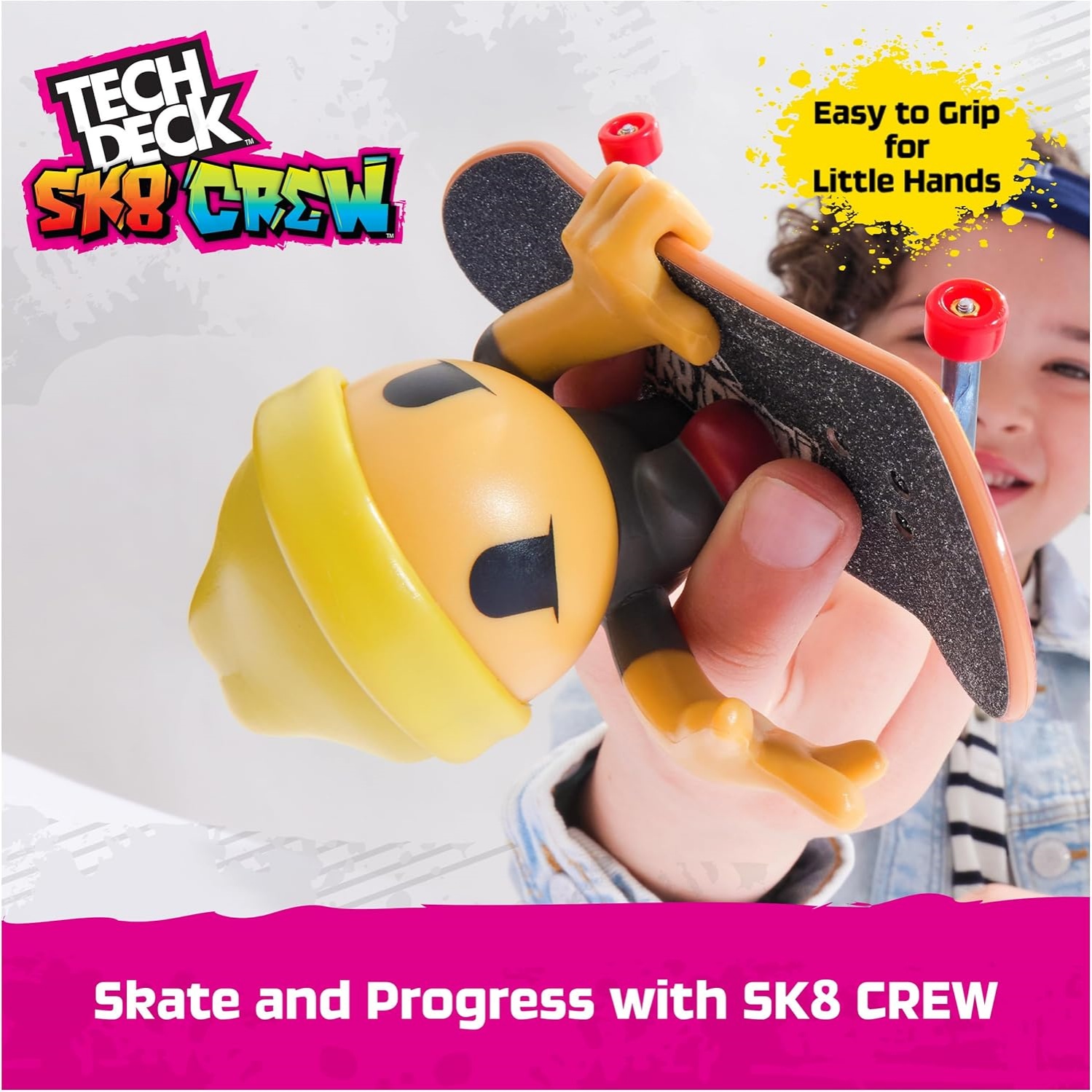 Sk8 Crew: Learn And Progress Your Finger Skateboard Skills With The Sk8 Crew Figure, Made For Young Hands Who Want To Learn About Skateboarding Snap Them To The Fingerboards To Recreate Real Skateboarding Tricks, Mastering Ollies, Power Slides, + More