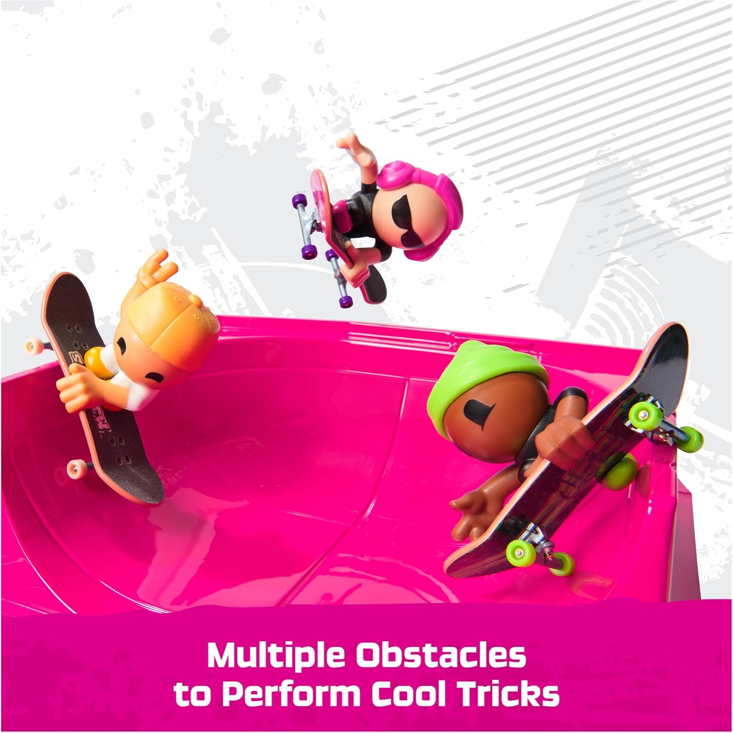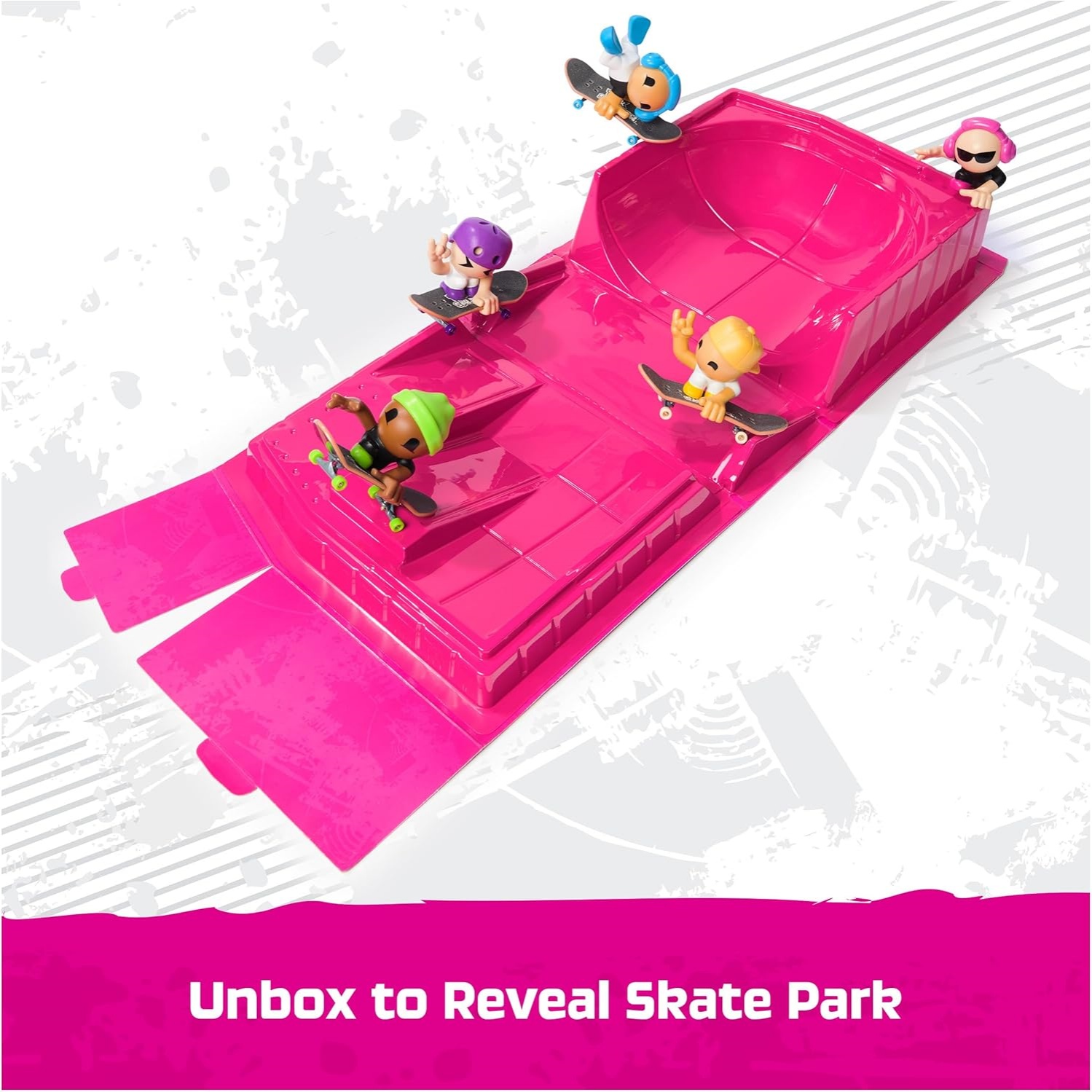 Includes: 1 Portable Sk8 Park, 4 Fingerboards And 5 Figures