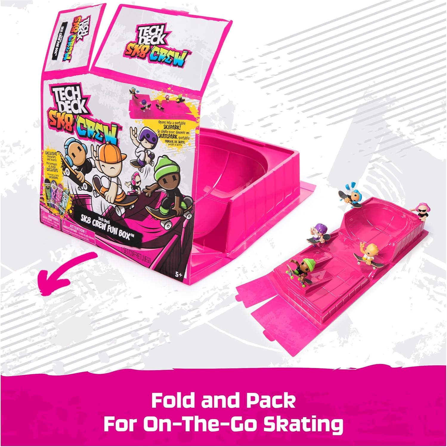 Fun On The Go: Hit Skate Tricks With Friends, Anywhere, Anytime With The 1-Step Setup Store Fingerboards And Sk8 Crew Members And Close The Box For Easy On-The-Go Fun And Clean Up
